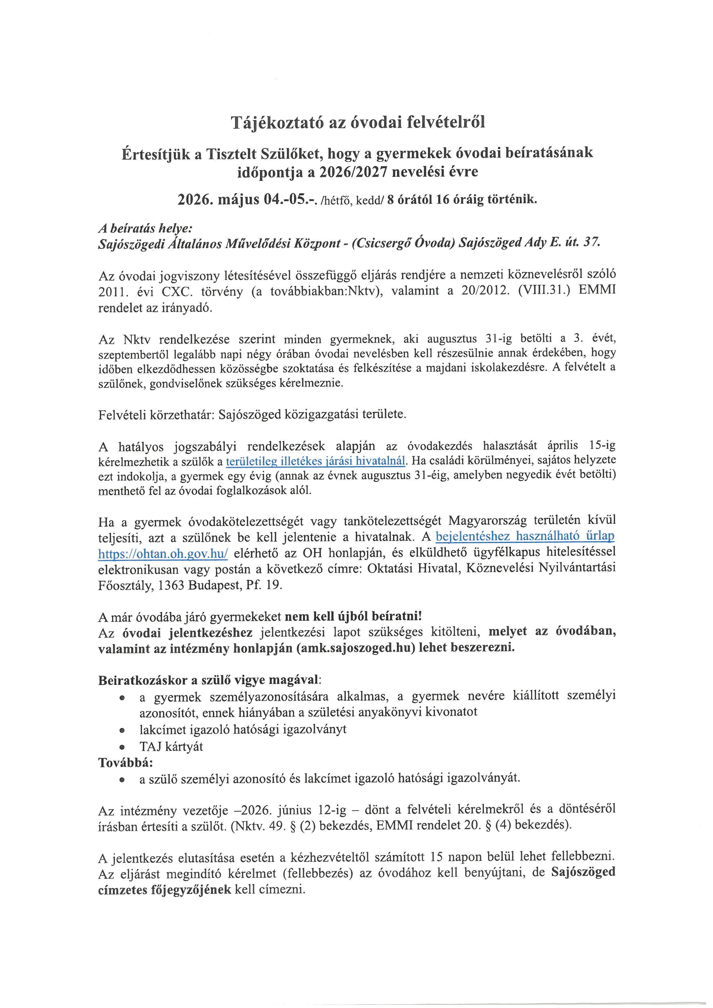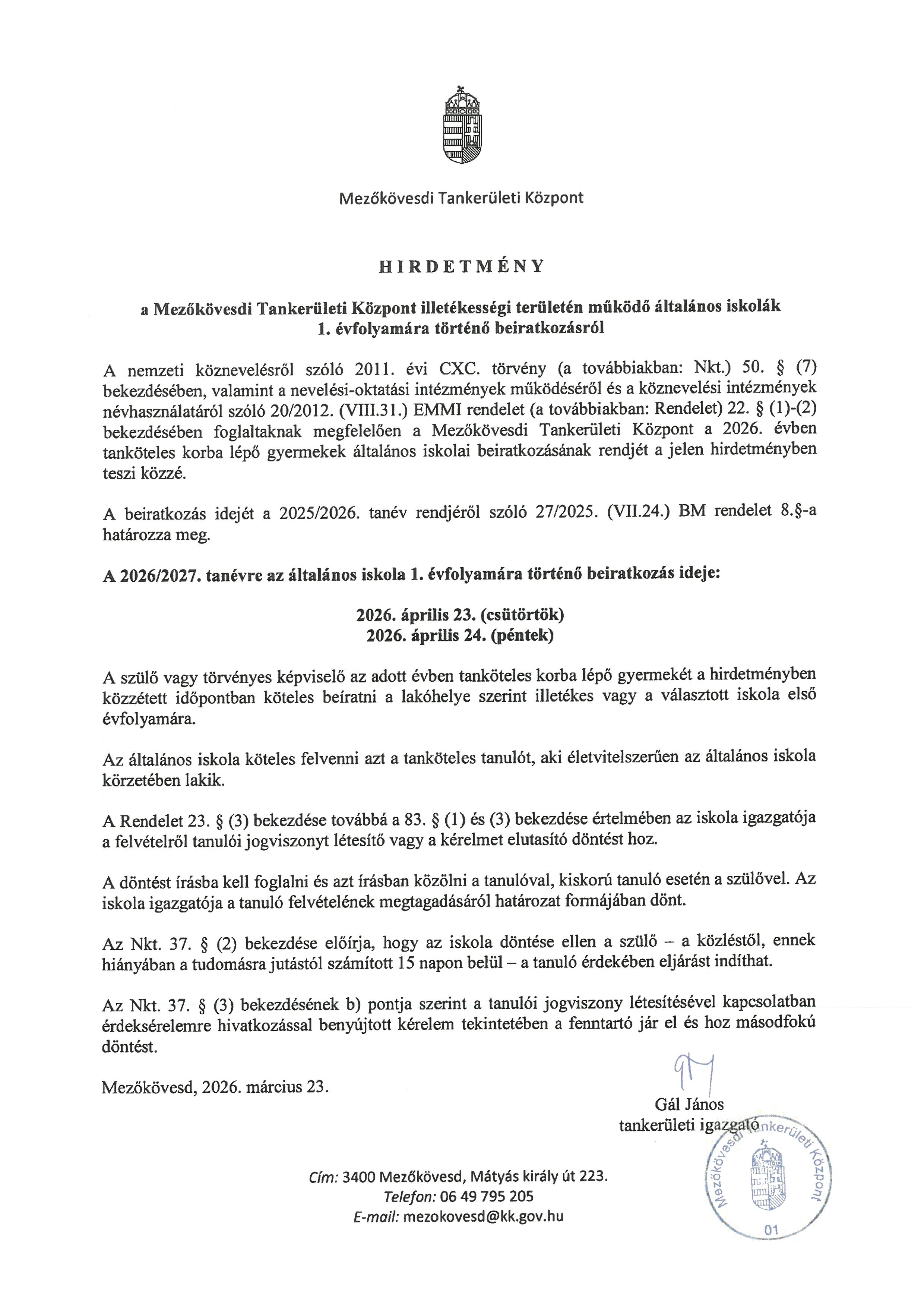 A Sajószögedi KÁIAMI főigazgatói munkakörre kiírt álláspályázatról