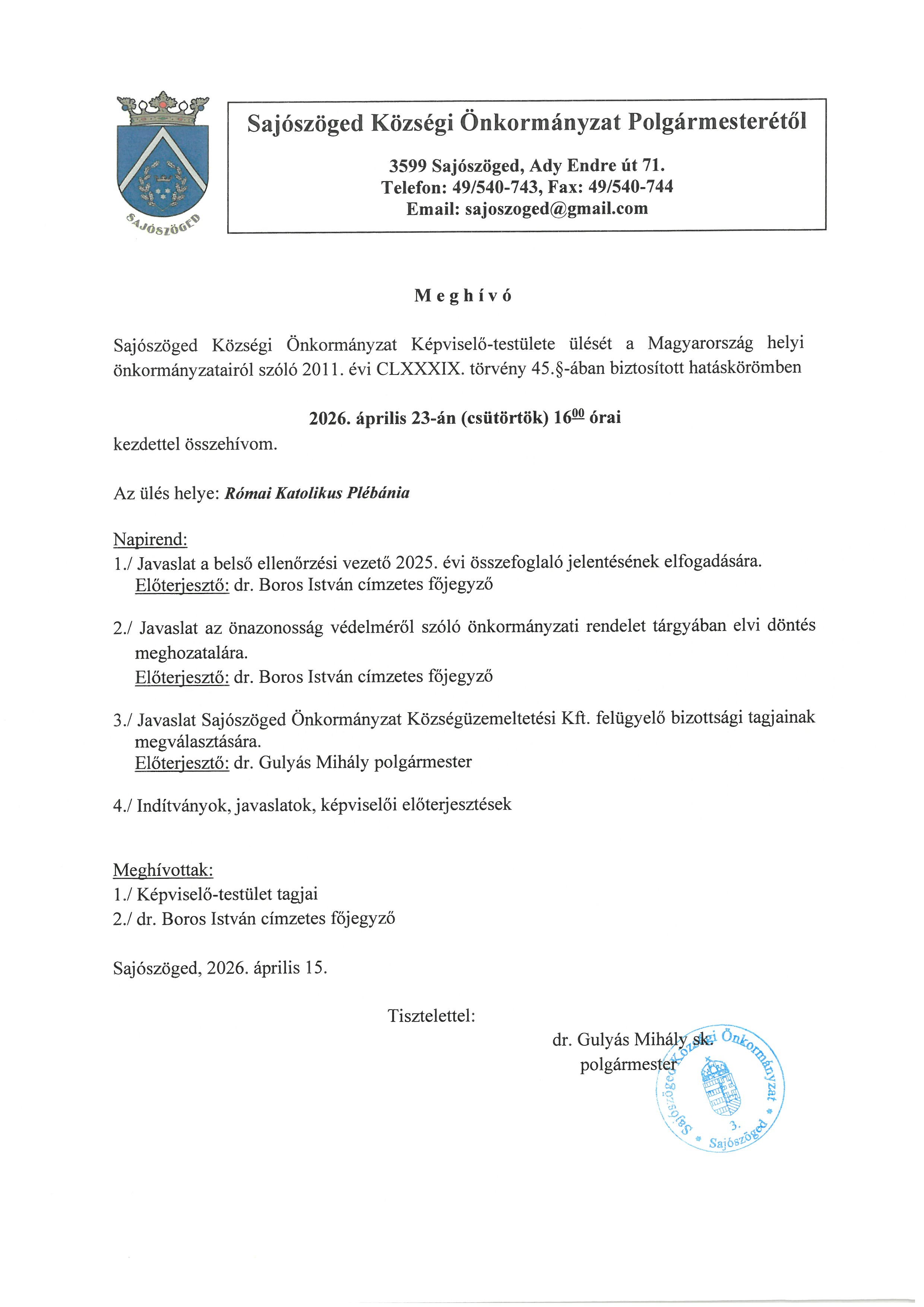 670 éves Sajószöged Községért Alapítvány támogatásával